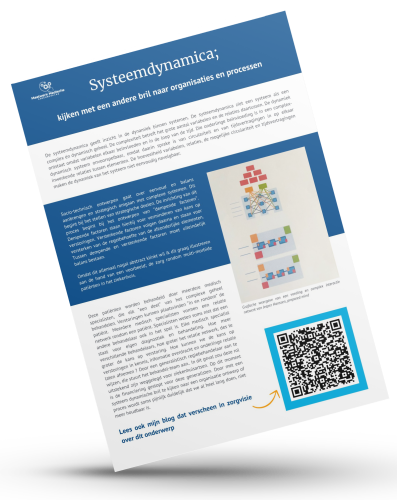 Systeemdynamica biedt inzicht, werkvormen en methodieken om processen en organisatie te ontrafelen. Naast het ontwerp wordt er steeds gekeken naar de uitvoerende factor; de mens. Die speelt een doorslaggevende rol. Hierin verschilt deze aanpak essentieel van “lean” trajecten.